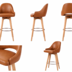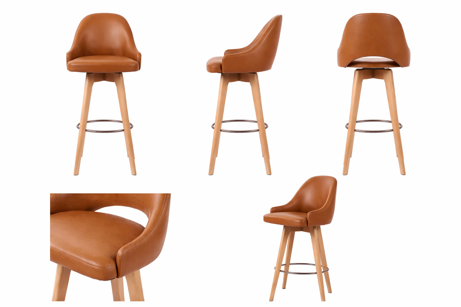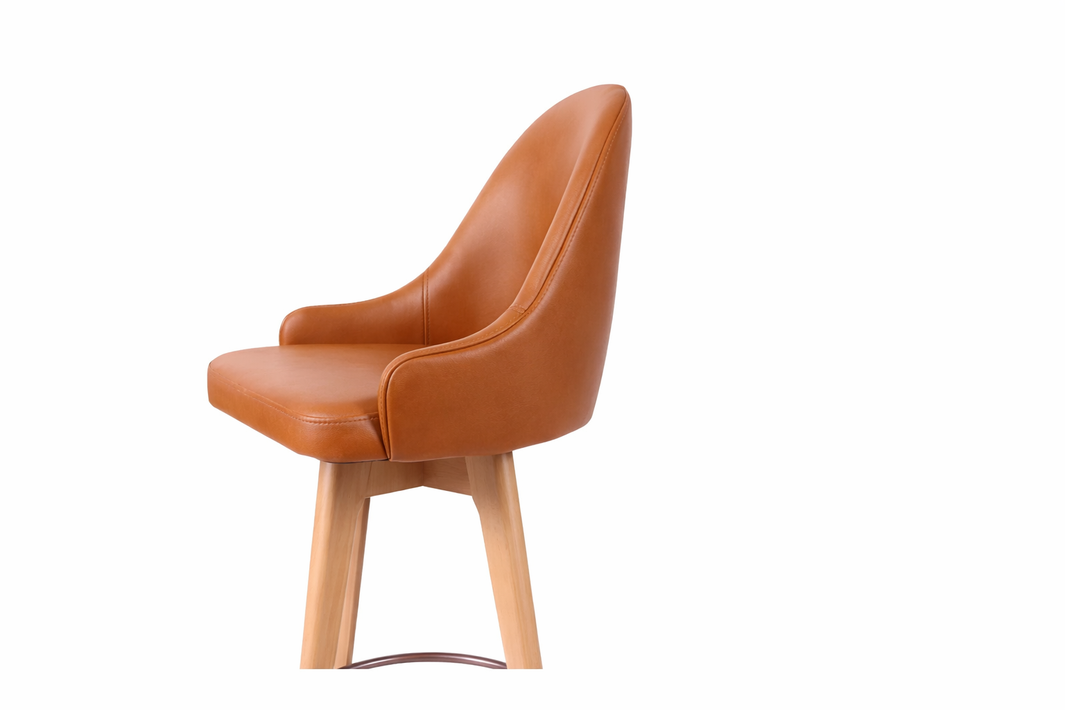 Banqueta giratória base em madeira em estilo contemporâneo com alto padrão de qualidade e acabamento. Produto de fabricação própria.