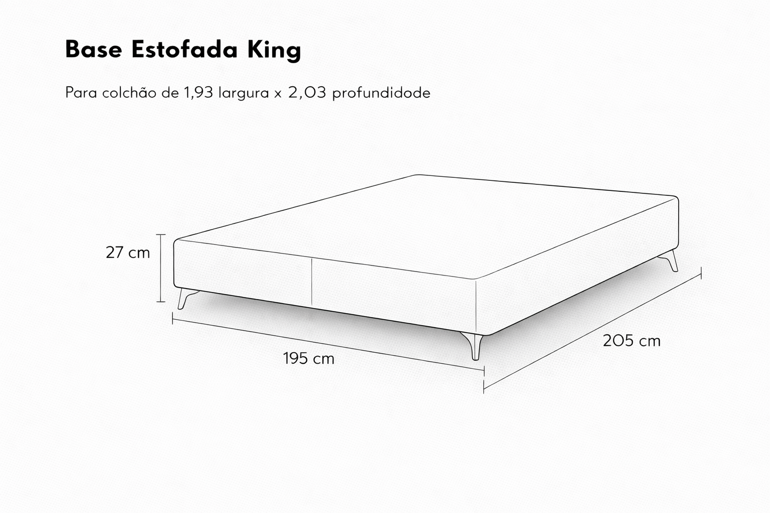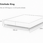 Dimensões – 1,95 larg. x 0,27 alt. x 2,05 prof. (para colchão king – 1,93 larg x 2,03 prof.)