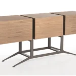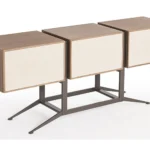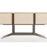 Composto por 3 grandes caixas que se equilibram sobre uma estrutura em aço, Kubo é um Buffet que preza pela usabilidade e pela elegância de suas linhas e acabamentos nobres e exclusivos. Combinando madeira, palhinha de buriti e aço, é um produto com linhas clássicas que remetem à arquitetura moderna.