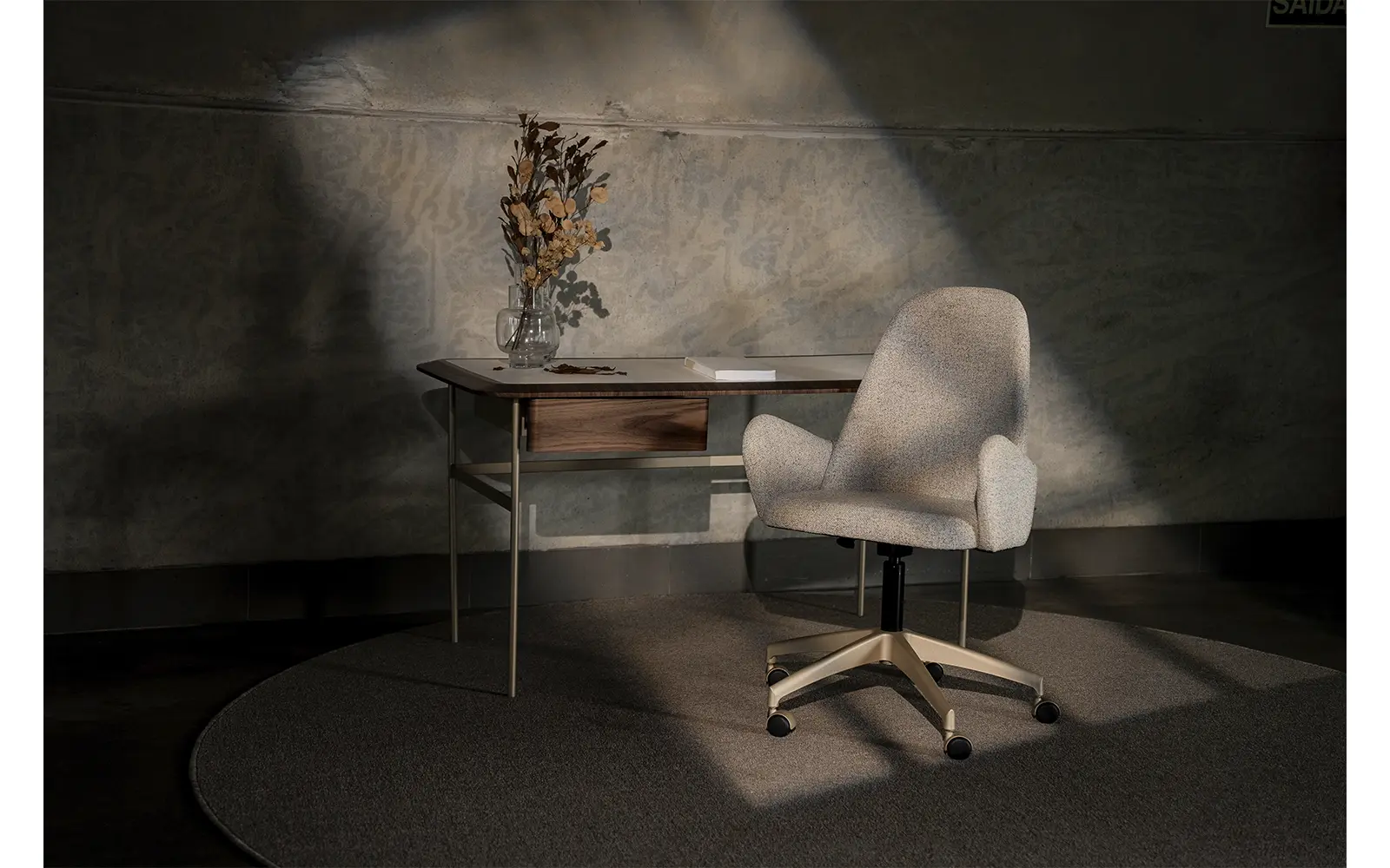 Cadeira estofada em estilo contemporâneo com alto padrão de qualidade e acabamento.