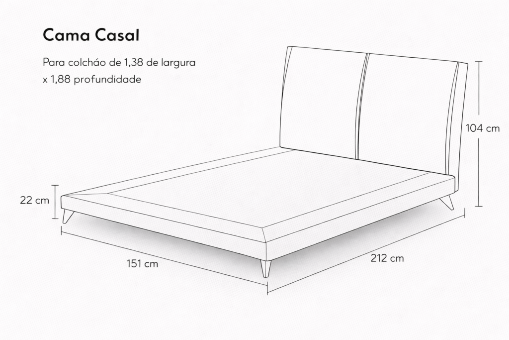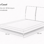 • Dimensões  –1,51 larg. x 1,04 alt. x 2,12 prof. (para colchão casal – 1,38 larg x 1,88 prof.)