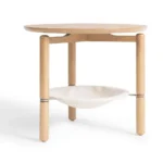 Desenhada para compor o décor com personalidade e funcionalidade, a mesa lateral Palanque leva esse nome por conta de seus pés robustos que exercem as funções de apoiar o tampo e o cesto de couro que fica quase que suspenso.